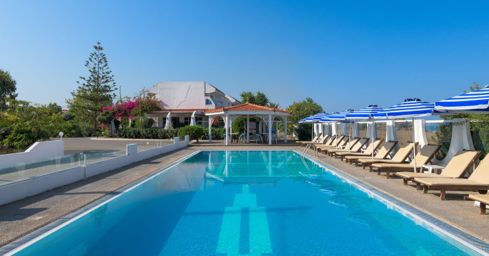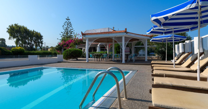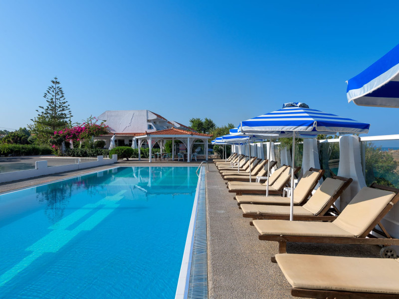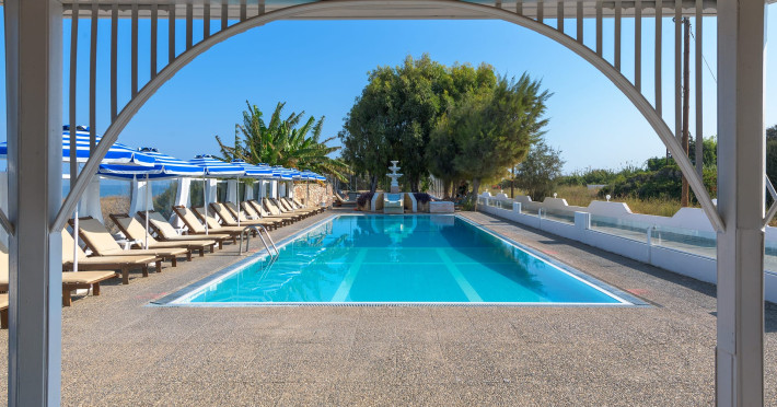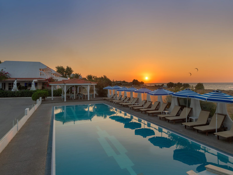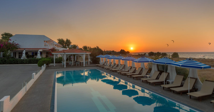 Nirvana Beach hotel is situated on the north-western coast of Rhodes near the traditional, picturesque village of Tholos. It is located close to the beach where it offers a unique view of the sunset over the southern Aegean islands and of the mountains of the Turkish coastline.