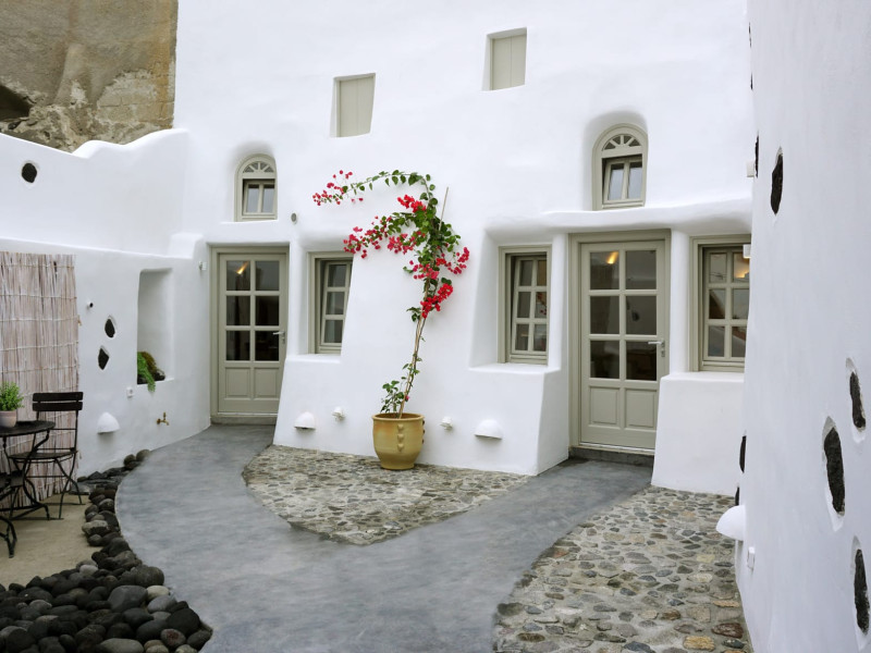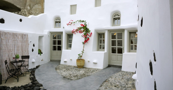"Niso Cave Suites" is located in Megalochori, Santorini, Greece. It is consisted of 3 suites with a common patio. The suite "Meliti" can accommodate up to 5 guests and has an idoor jacuzzi. The suite "Erato" can accommodate up to 4 guests and has an idoor jacuzzi, too. The 3rd suite is "Spio" with an outdoor jacuzzi, which has capacity of 2 guests.