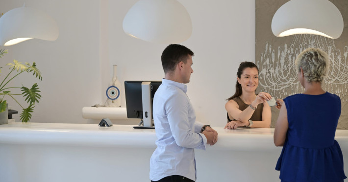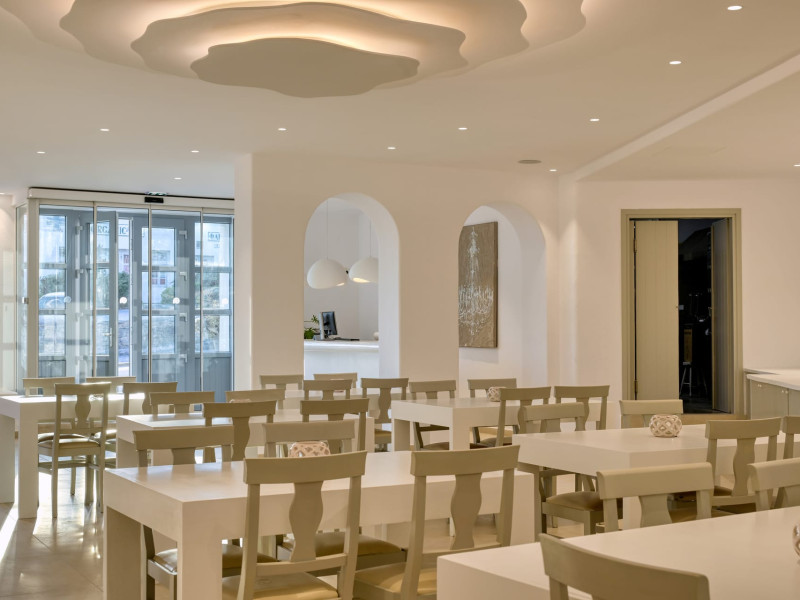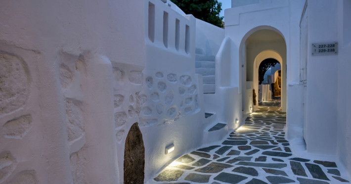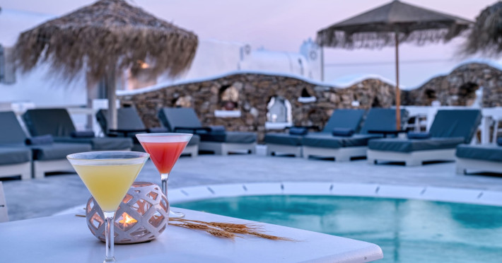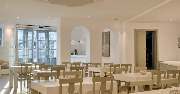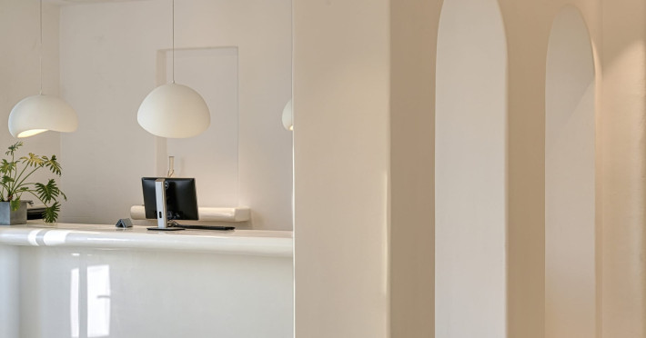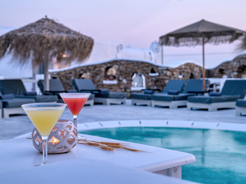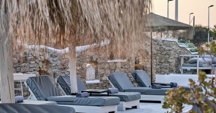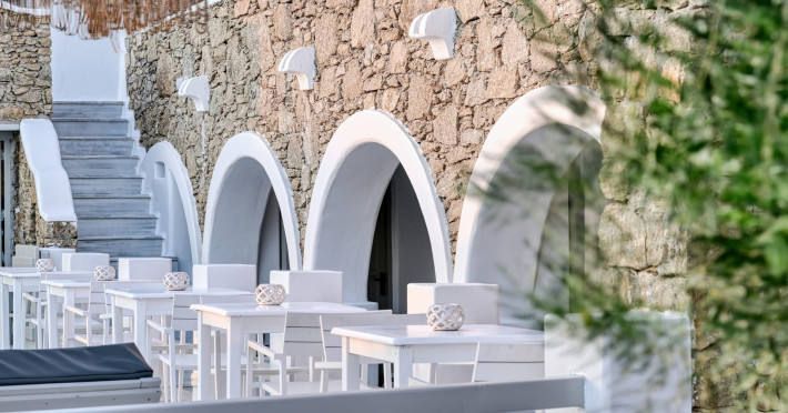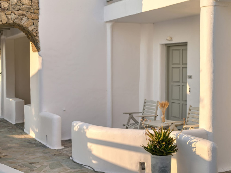 Nodo Boutique Hotel offers its guests the luxury of simplicity combined with the unique Mykonian hospitality.A 4-star small hotel with pleasant communal areas that resemble the narrow streets of Chora — with stairways, patches of greenery, and prominent rock features — a comfortable outdoor jacuzzi for relaxing moments with friends, and a sun-drenched pool next to the pool bar, ensuring you always have a refreshing drink nearby throughout the day.Located within walking distance from shopping centers and Mykonos Town, at a strategic spot just like its name suggests, it provides easy access to all points of interest, making it the ideal choice for your holidays on the island of the winds.The cubic shapes, a signature of traditional architecture, along with arches, stonework, and cement finishes, create curved forms that give the sense of sculpture in both outdoor and indoor spaces.Each day begins harmoniously with a European buffet breakfast featuring many local products and the warm smiles of our courteous staff.Our rooms are minimal yet full of character, designed to meet the needs of every guest — whether dreaming of a peaceful solo escape, a romantic getaway, or a holiday with friends — offering the safety and comfort of a home away from home.