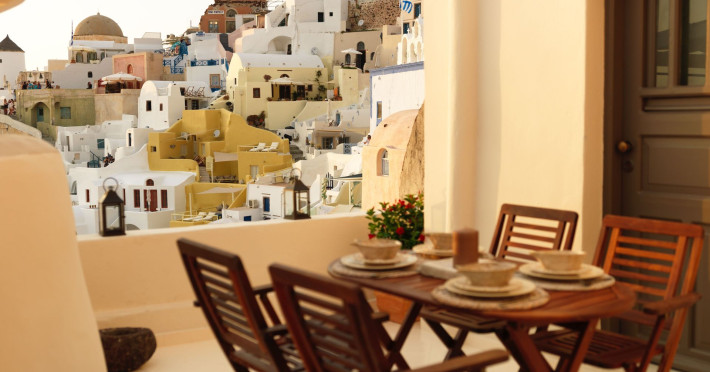 Feel the allure of the prosperous last century in Santorini without missing any of the modern amenities. Oia K&K Unique Holiday Homes also feature vintage cutlery and traditional decorative items.