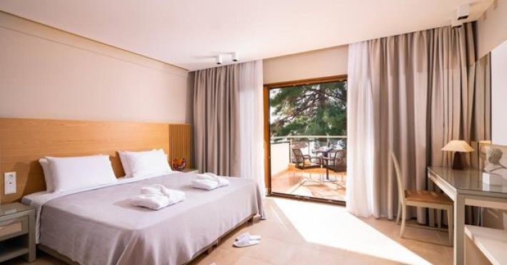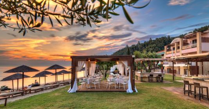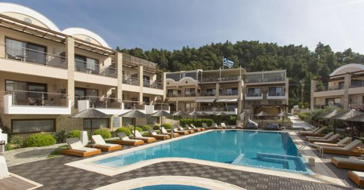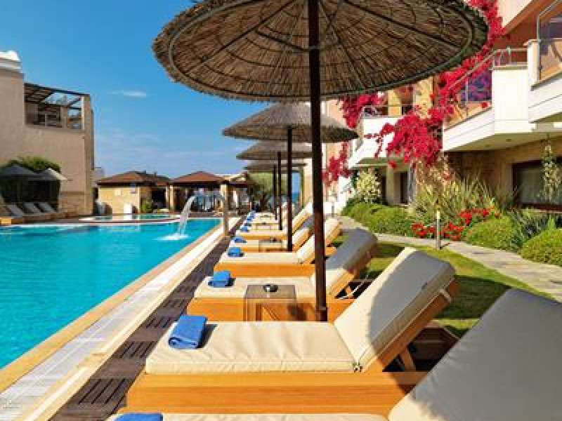 A new hotel of distinctive style and elegance situated directly on the beautiful beach of Fourka only 90 km from Thessaloniki. Built with an architectural design which is in harmony with its environment, this hotel is the perfect setting for a memorable vacation. With a backdrop of picturesque pine-cover hills and an amazing view of the crystal waters of the Aegean sea, the Olympion Sunset offers unforgettable colorful sunsets.