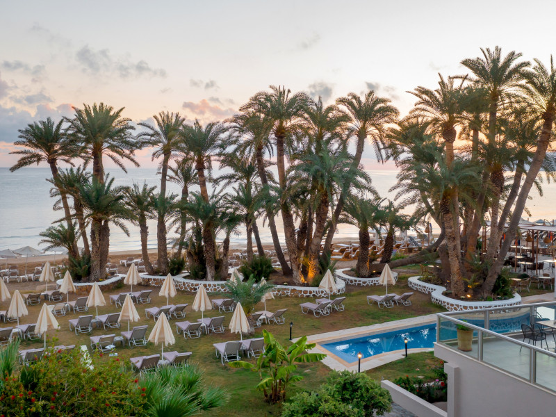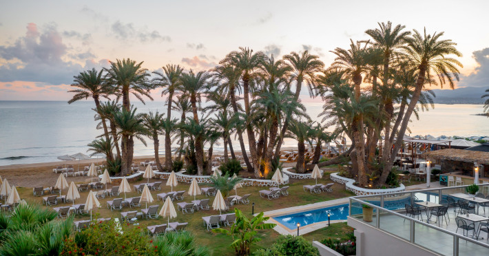 Zeus Hotels Palm Beach is a 3-star property located on the beach of Stalis. The hotel features a restaurant on HB basis as well as an all-day bar for drinks and snacks in a relaxing atmosphere.Surrounded by lush gardens with palm trees and a big swimming pool, theaccommodation offers double or twin rooms with sea view, pool view or inland view, all with their own balcony.The property offers a spacious sun terrace overlooking the Mediterranean Sea.