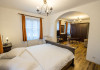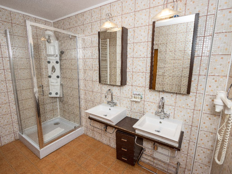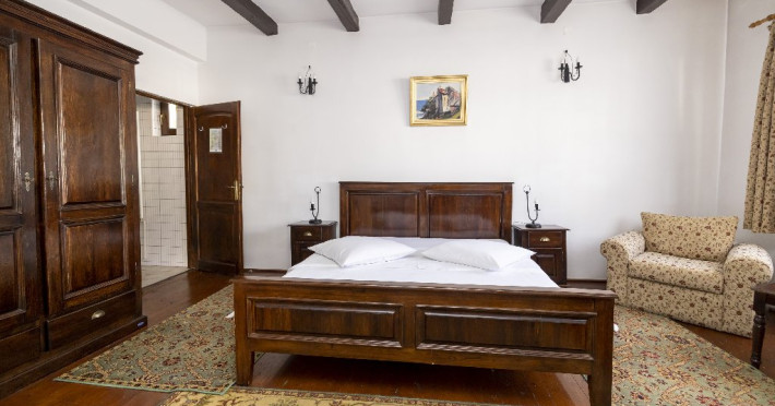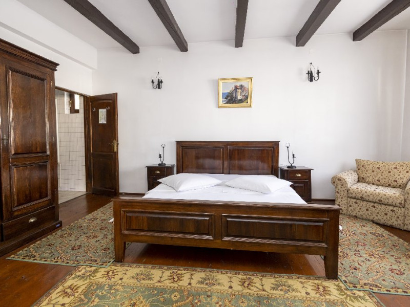 INFORMATII GENERALE Pensiunea Rhein se afla in statiunea Azuga, in apropiere de partia Sorica. FACILITATI UNITATE Pensiunea Rhein dispune de parcare, restaurant cu doua saloane, internet Wi-Fi. Sarea si piperul sunt date de locul unde este amplasat restaurantul, Pivnitele Rhein Cie 1892 si de catre vinurile linistite si spumante de inalta calitate. Restaurantul se afla intr-o cladire separata de corpurile de cazare. La un cost suplimentar, exista posibilitatea de a vizita hrubele si un mic muzeu care ilustreaza evolutia productiei de vin spumant. DESCRIERE CAMERE Camerele sunt dispuse in trei corpuri de cladire, fapt ce confera acestora o panorama deosebita asupra parcului de 2 ha. Acestea sunt denumite sugestiv dupa nume de soi de struguri albi si rosii: Cabernet, Malbec, Shiraz, Merlot, Pinot, Iordana, Babeasca, Tamaioasa, Feteasca, Sauvignon, Chardonnay, Traminer, Semillon, Riesling, Muscat, Viognier. Camera single este prevazuta cu pat apropiat de dimensiunea celui matrimonial, TV cu ecran plat cu canale prin cablu, precum si o baie privata cu articole de toaleta gratuite, uscator de par. Camera dubla este prevazuta cu pat matrimonial sau twin, in functie de necesitate, TV cu ecran plat cu canale prin cablu, precum si o baie privata cu articole de toaleta gratuite, uscator de par. Junior Suite este prevazut cu un dormitor cu pat matrimonial si o camera de zi, o canapea extensibila, TV cu ecran plat cu canale prin cablu, precum si o baie privata cu articole de toaleta gratuite, uscator de par, papuci si halate de baie. Senior Suite este prevazut cu un dormitor cu pat matrimonial si o camera de zi dotata cu semineu, o canapea extensibila, TV cu ecran plat cu canale prin cablu, precum si o baie privata cu articole de toaleta gratuite, uscator de par, papuci si halate de baie. LOCALIZARE Pensiunea Rhein se afla in statiunea Azuga, in apropiere de partia Sorica. ATRACTII TURISTICE Partia Sorica, Partia Cazacu, Castelul Cantacuzino, Parc Ecaterina Teodoroiu, Casa memoriala George Enescu. La aproximativ 10 km se afla Castelul Peles si Castelul Pelior. SERVICII DE MASA Mesele se servesc in restaurantul propriu cu o capacitate de 90 de locuri.