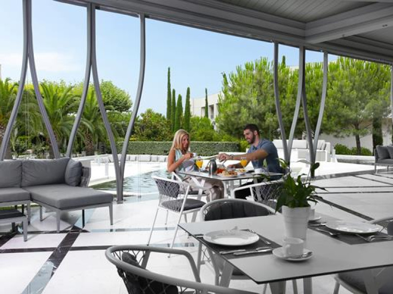 The hotel was totally reconstructed in 2013. Its new design balances spacious minimalism and delicate chic, original Greek style and up-to-date hi-tech. The hotel offers 176 rooms including luxurious suites. Sophisticated guests will be inspired by the exquisite color solutions of the interiors and decorative elements. Spacious and well-equipped rooms will please the guests with five-star comfort and services. The furniture of the well-known brands completes the elegant modern design.
