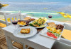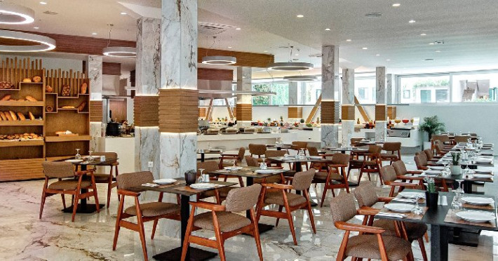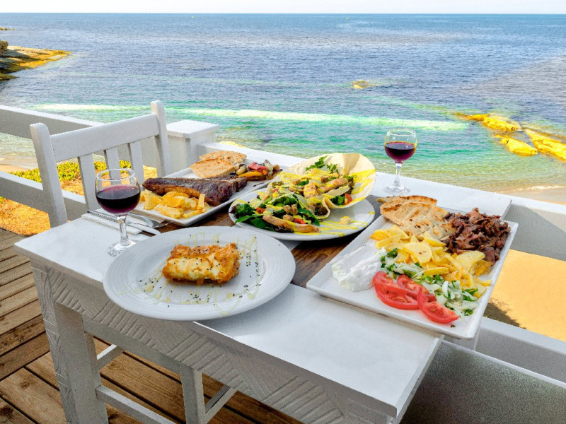 Mese All Inclusive: mic dejun devreme la cerere 04:00-07:30, mic dejun international si grecesc 07:30-10:30, pranz 12:30-14:30 cu bauturi racoritoare, bere la draft, vin local, cafea, ceai, ciocolata calda, sucuri. Cina 18:30-21:30 cu bauturi locale. Intre mese se servesc gustari traditionale grecesti, toast, hamburgeri si hot-dogs.