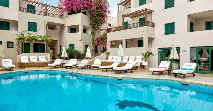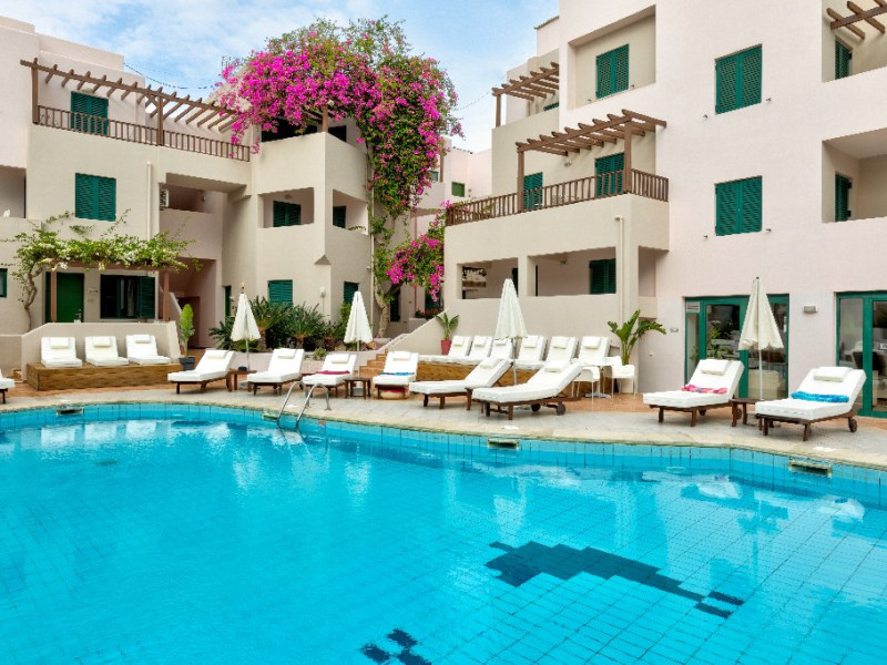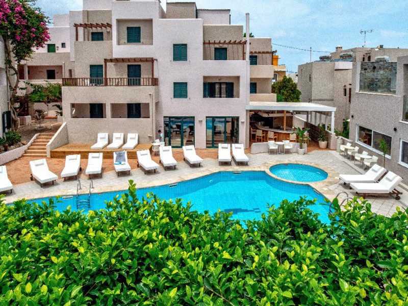 Localizare Hotelul este situat pe malul marii, pe insula Creta. In apropiere se afla magazine, suveniruri, baruri si restaurante. La doar cateva minute de mers pe jos de centrul statiunii Hersonissos. Parcul acvatic Acqua Plus se afla la aprox. 9 km, ruinele Palatului Knossos la aprox. 33 km, aeroportul Heraklion la aprox. 25 km, aeroportul Chania la aprox. 174 km.