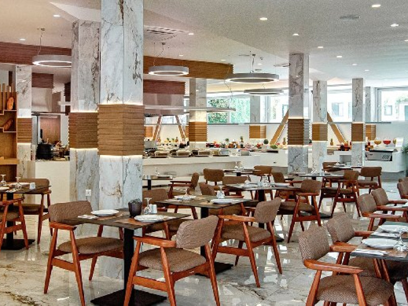 Restaurante si baruri Restaurant principal Porto Greco cu bufet si statie SHO W Cooking. Restaurant tematic inclus in all inclusive o cina/saptamana la Orion Traditional Greek Meze (18:30-21:30, rezervare necesara). Baruri: Club Tropicana Pool Bar (10:00-19:00, DJ 12:00-14:00), Bossa Nova Pool Bar (10:00-19:00), Kings & Queens Disco (19:00-23:00), Lobby si barul piscinei Elmi (10:00-23:00), barul piscinei Porto Greco (10:00-19:00).
