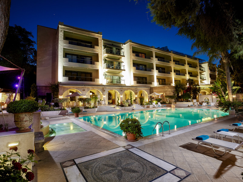 This property is located in Rhodes town, looking across the medieval city, this 5-star hotel offers delightful gardens, an outdoor swimming pool and a spa and beauty treatments. The spacious rooms and suites are beautiful decorated, and their balconies overlook either the parks and/or the pool, or an archeological area. The Roof Lounge Bar, one of the trendiest places in town for cocktails, offers view to the Medieval Town and the Castle of the Knights.