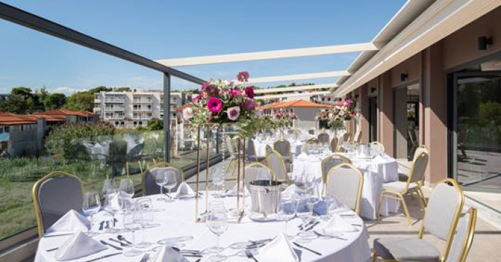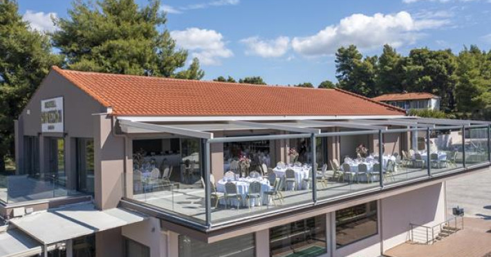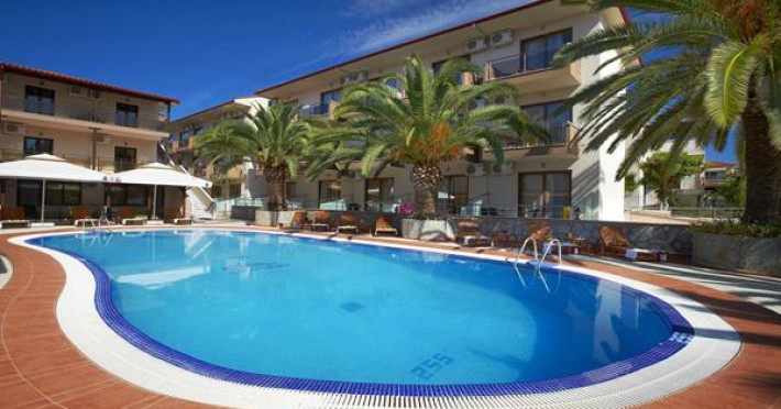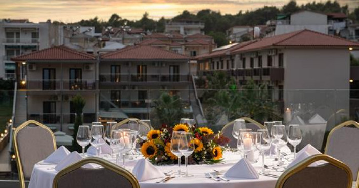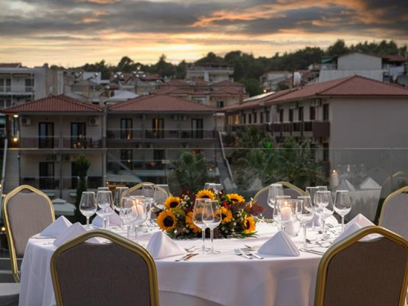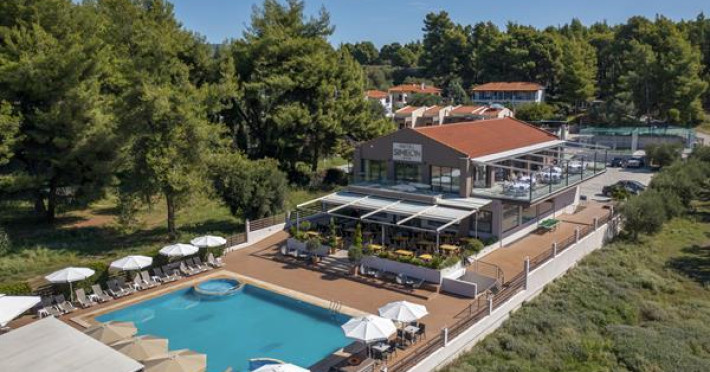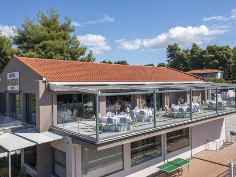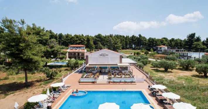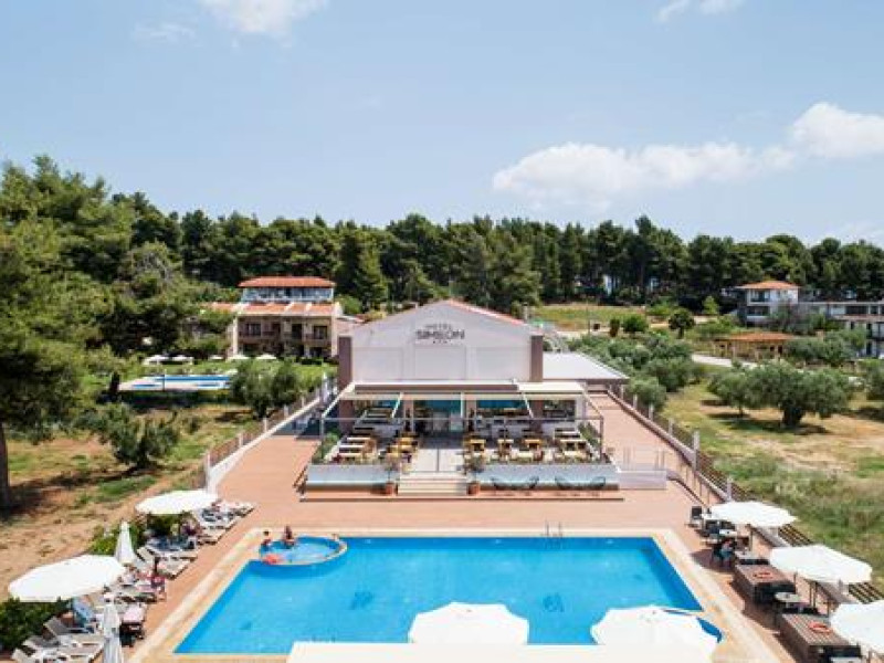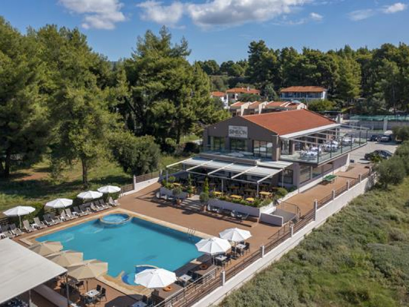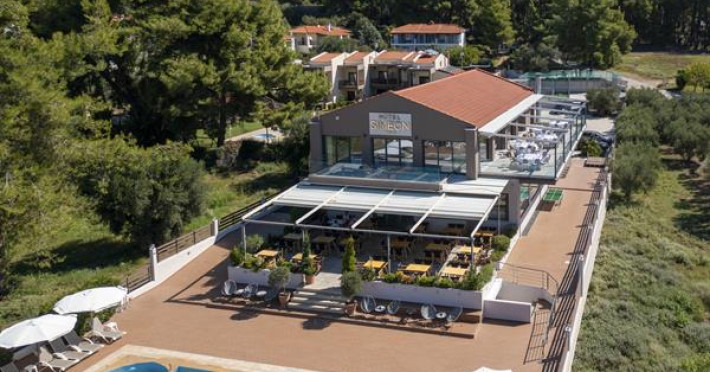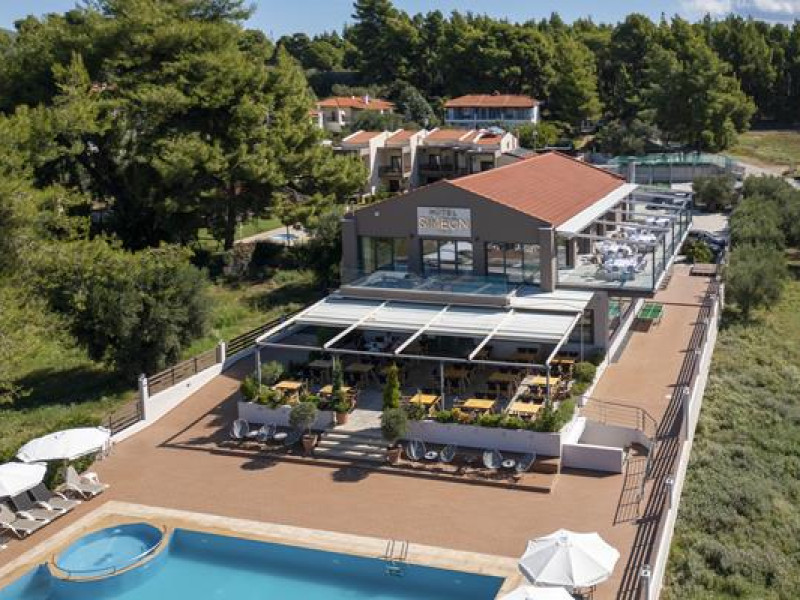 Simeon Hotel is located in a picturesque neighbourhood of Metamorfosi, in the very heart of Sithonia Peninsula, about 80 m from the beach. Sithonia is known not only for its virgin pine woods and remarkably clear azure shores, but also for its fishing bays and olive tree groves. Amidst Sithonia's charming nature there are many bustling little villages; one of them is Metamorfossi, attracting many visitors because of the large number of taverns, cafes and bars.