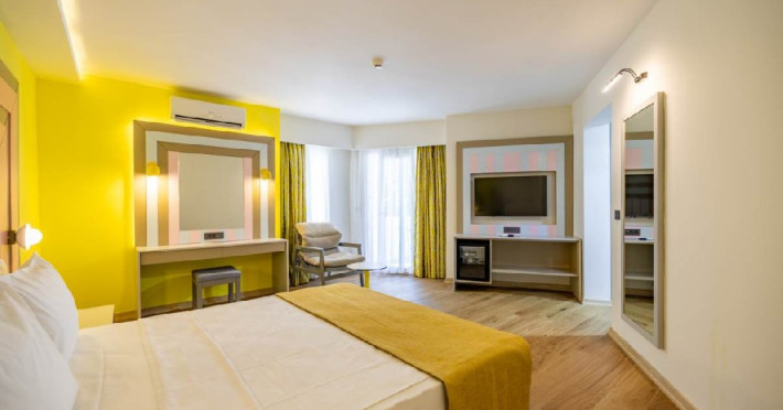 In calitate de familie Yelken Hotels, ne mandrim sa va oferim servicii de calitate printr-o echipa dedicata satisfactiei dumneavoastra si facilitati concepute pentru a asigura tot confortul necesar unei vacante de neuitat, peste asteptari. Va invitam sa luati parte la calatoria inceputa in 2006 alaturi de familia Yelken, pentru o vacanta in care sa va bucurati din plin de mare, soare si nisip, de divertisment pe tot parcursul zilei prin activitatile noastre de animatie, de preparate culinare rafinate in restaurantele si locatiile noastre a la carte si de momente de relaxare pentru trup si suflet in centrele noastre SPA, concepute pentru liniste si stare de bine. Caracteristici generale Pentru rezervari de minimum 7 nopti sunt disponibile tarife promotionale speciale. Spatiile publice si camerele hotelului au fost renovate in 2016. Hotelul are 3 etaje si dispune de 1 lift pentru oaspeti. Centrul SPA (Baie turceasca, sauna, piscina, fitness, activitati si baruri) este inchis in sezonul de iarna (concept mic dejun) si va fi deschis incepand cu 1 mai. Hotelul se afla la distanta de mers pe jos de marina si centrele comerciale. Accesul la internet este gratuit in zonele publice (lobby si restaurant). Oaspetii care doresc pot intra in piscina si in mare purtand costume de baie modeste (hasema). Minibar: la sosire se ofera apa gratuit. Serviciile de frizerie si coafor sunt disponibile in apropiere, nu in incinta hotelului. Animalele de companie nu sunt permise in hotel. Dotari camere Camerele standard (cu vedere la uscat sau la mare) au o suprafata de 2226 mp. Camerele de familie (cu vedere la uscat sau la mare) au o suprafata de 35 mp.