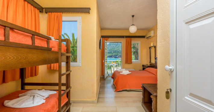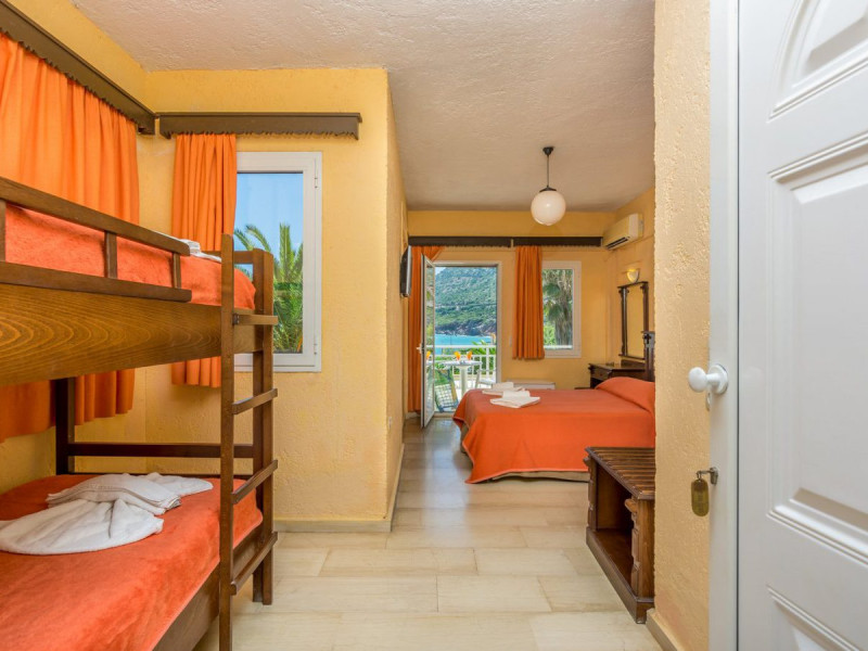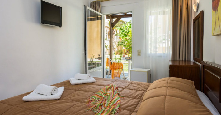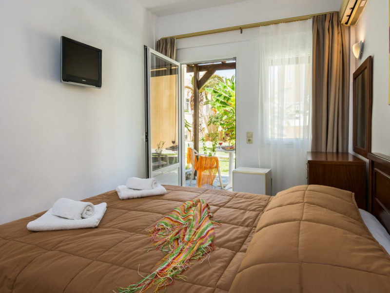 Each room has a flat-screen TV with satellite channels, air conditioning (with extra charge), safe (with extra charge) and mini fridge.