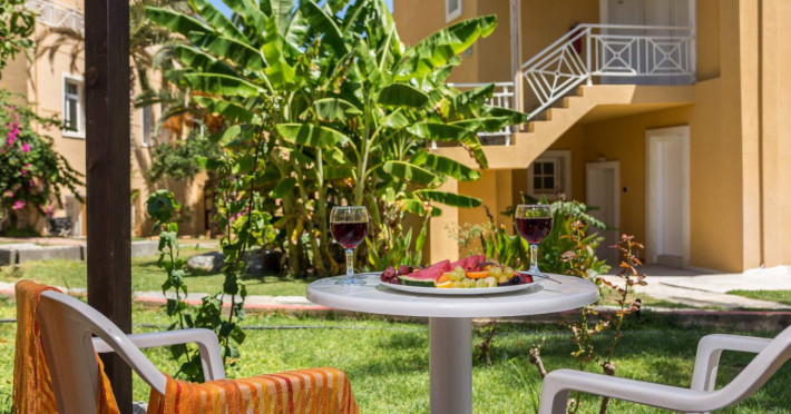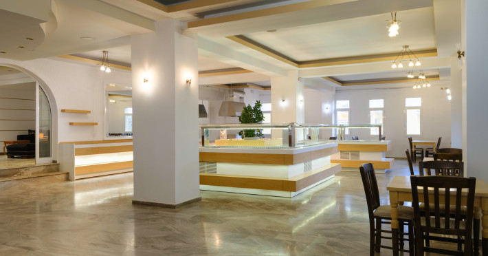 Guests can start their day with a breakfast in buffet style. Greek dishes enriched with local flavours are served at the on-site restaurant. Refreshing drinks and snacks can be ordered at the bar.