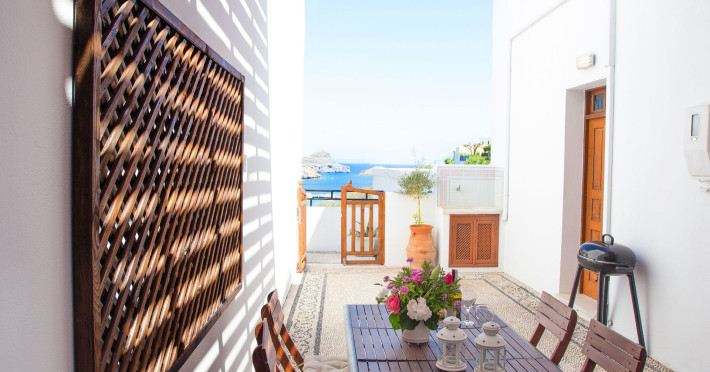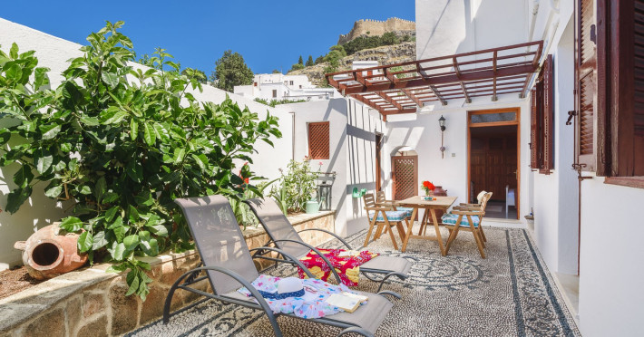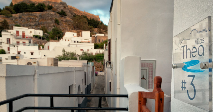 Located in the heart of bustling and unique Lindos, Thea Villas are bringing a modern twist to the traditional Greek style house. With fully equipped kitchens and breathtaking views, Thea Villas are all you could possibly need for your Greek retreat. Each villa has its own terrace complete with sunbeds, as well as seating area and a barbeque. Enjoy your nights overlooking the village itself and the Acropolis of Lindos. Thea Villas are just a short walk from the main square of Lindos and a few minutes walk away from Lindos main beach.