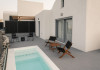 Inspired by minimalist Cycladic architecture and contemporary elegance, each suite features a private outdoor heated tub with spectacular Aegean views, a furnished patio with sun umbrella, and a cozy living area with a sofa bed and Smart TV offering satellite and cable channels. The fully equipped kitchen and comfortable bedroom — complete with an anatomical mattress and a choice of pillows — ensure a truly restful stay. The bathroom comes stocked with premium toiletries, plush towels, bathrobes, slippers, and pool towels, as well as a hairdryer and hair straightener for your convenience.