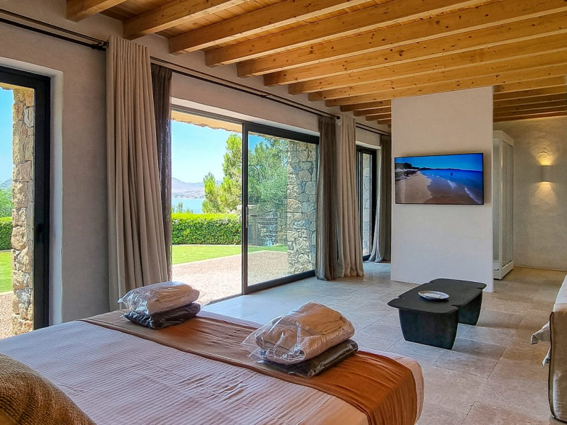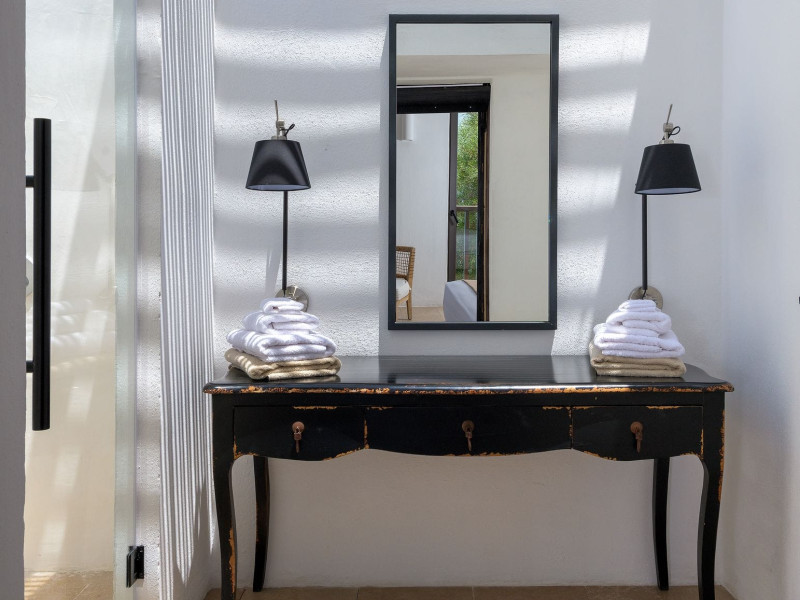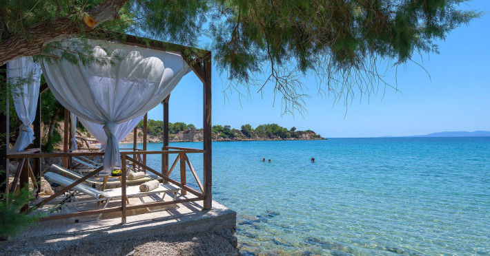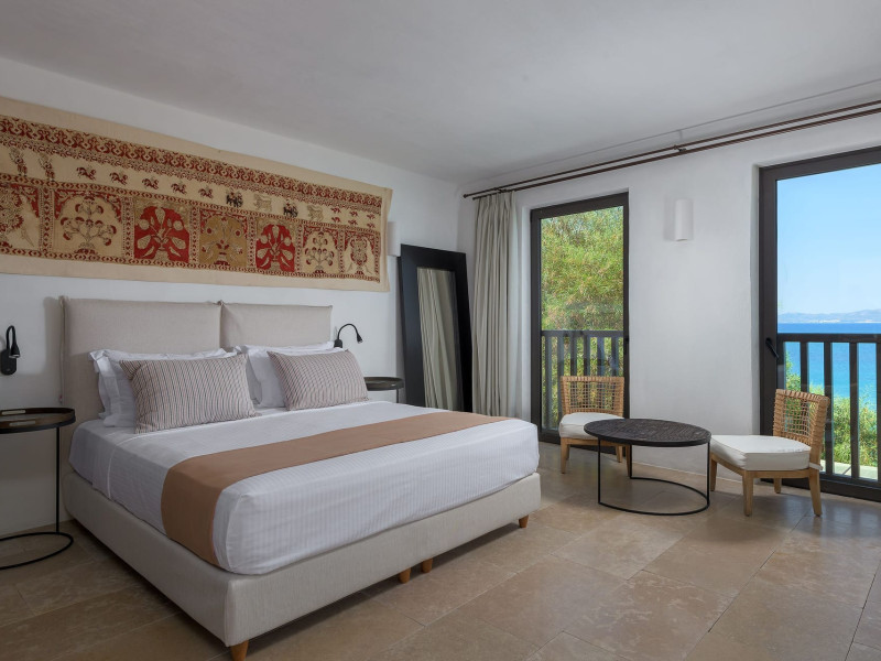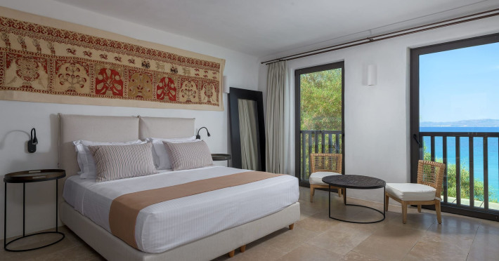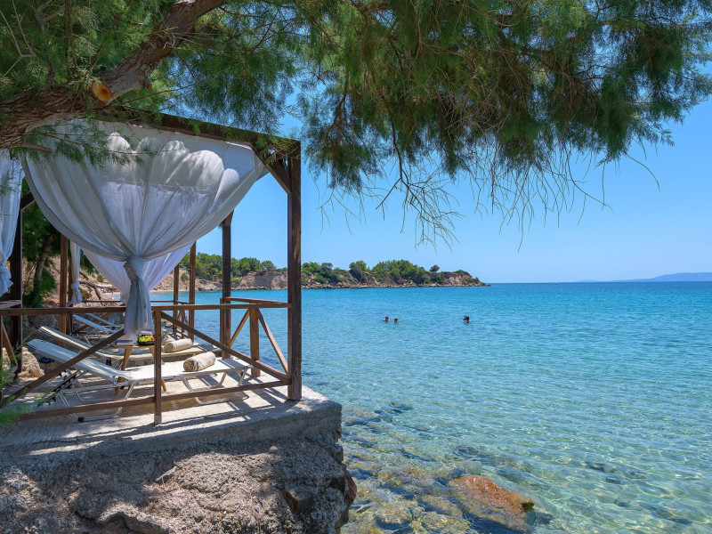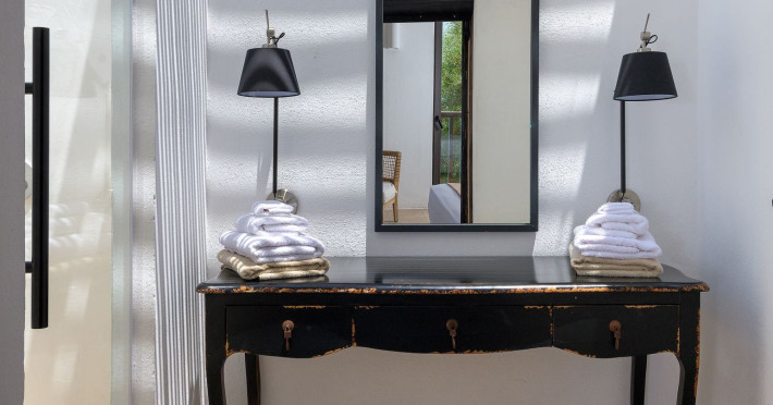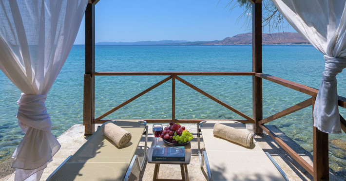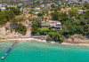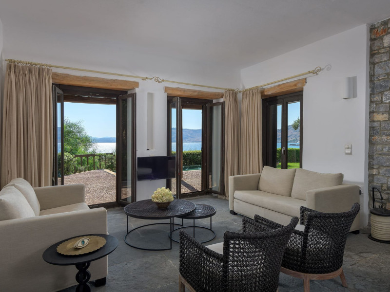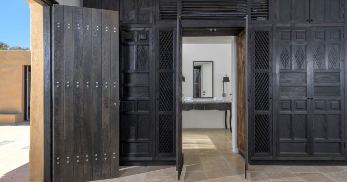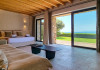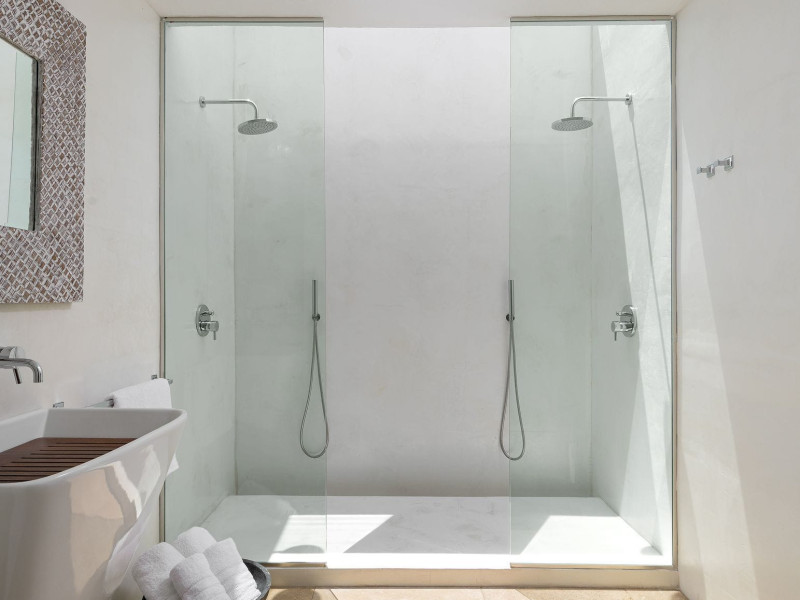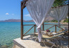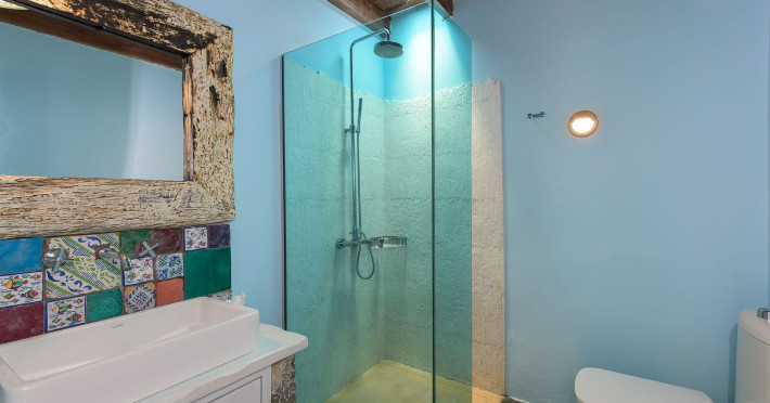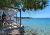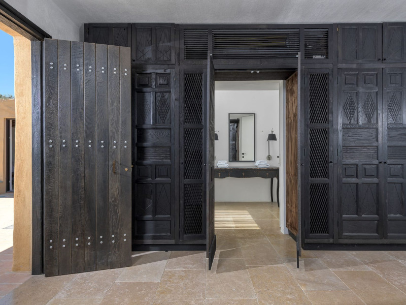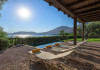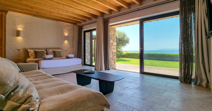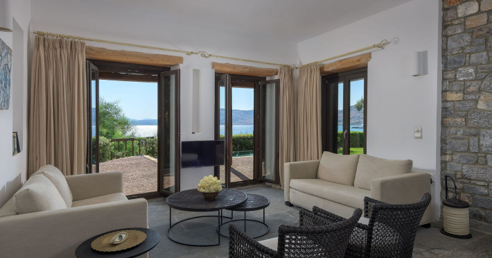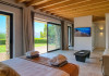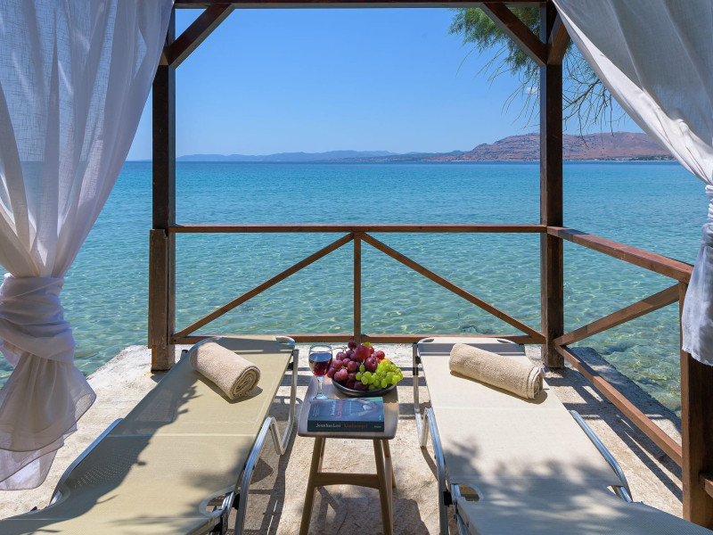 The residence is located in the eastern part of the island at the Pefki location of the Lindos community and at an altitude of 12 meters from sea level. The western end of the plot is located directly by the sea while the slopes, an integral part of the natural relief, delineate the boundaries of the land plot. The particular features of the landscape, the narrow rectangular shape of the plot and the view dictated the linear ground plan.Access is possible using a rural road, on the narrow side of the plot. Particular emphasis was placed to integrate the building with its natural surroundings, so the architectural design of both the building and the landscape were created at the same time and were considered as equally important.The kitchen with the dining room and the living room, extend to the back yard, an area protected from both the wind and the sun. The master bedroom has a half round shaped bathroom with a stone dome, with light filtered by small colored openings. The house has cross natural ventilation and lighting, all day long.Small skylights decorate the areas connecting rooms. The rough building surface, which blends with the natural terrain, and is clearly influenced by the old farmhouses of the area, is made up of uncoated local stone (atsakopetra) and coated surfaces using lava and lime.The inner surfaces were coated and painted with aged limewash. The floors were coated with a local shale stone, while bathroom walls were covered with aged white marble in the shape of a mosaic stone. The outdoor yard is covered with pebbles. The main features of the flat roof are the trusses and wooden planks to gaps between trusses. Inside lighting is adjustable making reference to candle light.