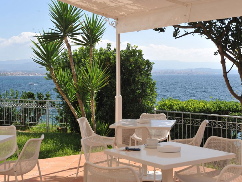 Hotelul dispune si de o frumoasa piscina in aer liber, inconjurata de sezlonguri si umbrele, unde oaspetii se pot relaxa si se pot bucura de soare, admirand vederile impresionante ale marii. Exista, de asemenea, o zona de gradina fermecatoare, unde oaspetii se pot plimba si se pot bucura de frumusetea naturala a peisajului inconjurator.