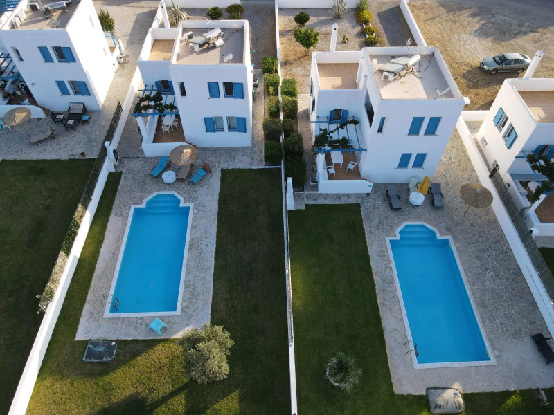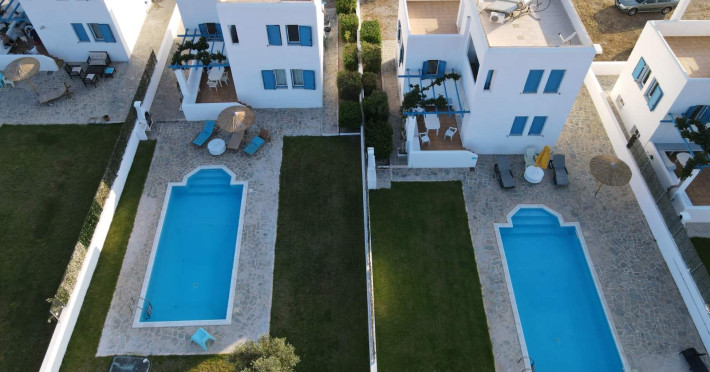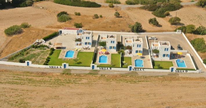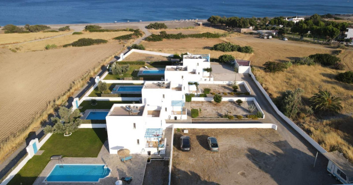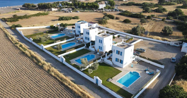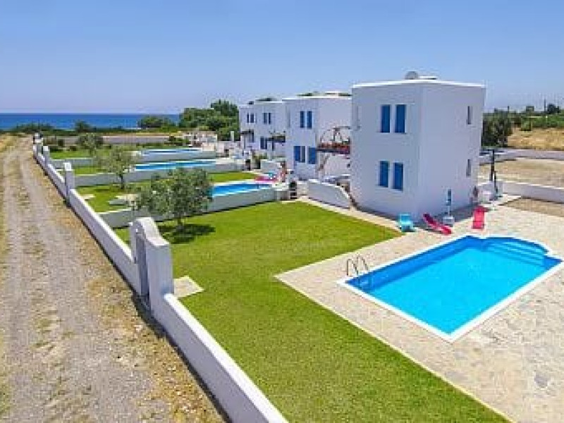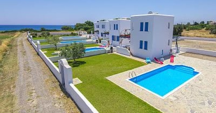 The complex White Houses Villas is a quality choice vacation in South Rhodes. These traditional villas (107 m²) each built with traditional architecture and specifications have holiday accommodation with traditional discreet luxury. Located 500 meters from the village center and 100 meters from Gennadi from the unique beach. Within walking distance you can find the central square of the village, clinic, pharmacy, supermarket, traditional bakery, shops, restaurants and cafes. It consists of 4 buildings just like each other, all with sea view, garden with flowers, lawn pool, barbeque and car parking.